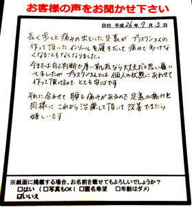 しかし、当院で足の状態や歩き方を細かくチェックしてインソールを作製したことで、痛みで歩けなくなることがなくなったと喜ばれています。
